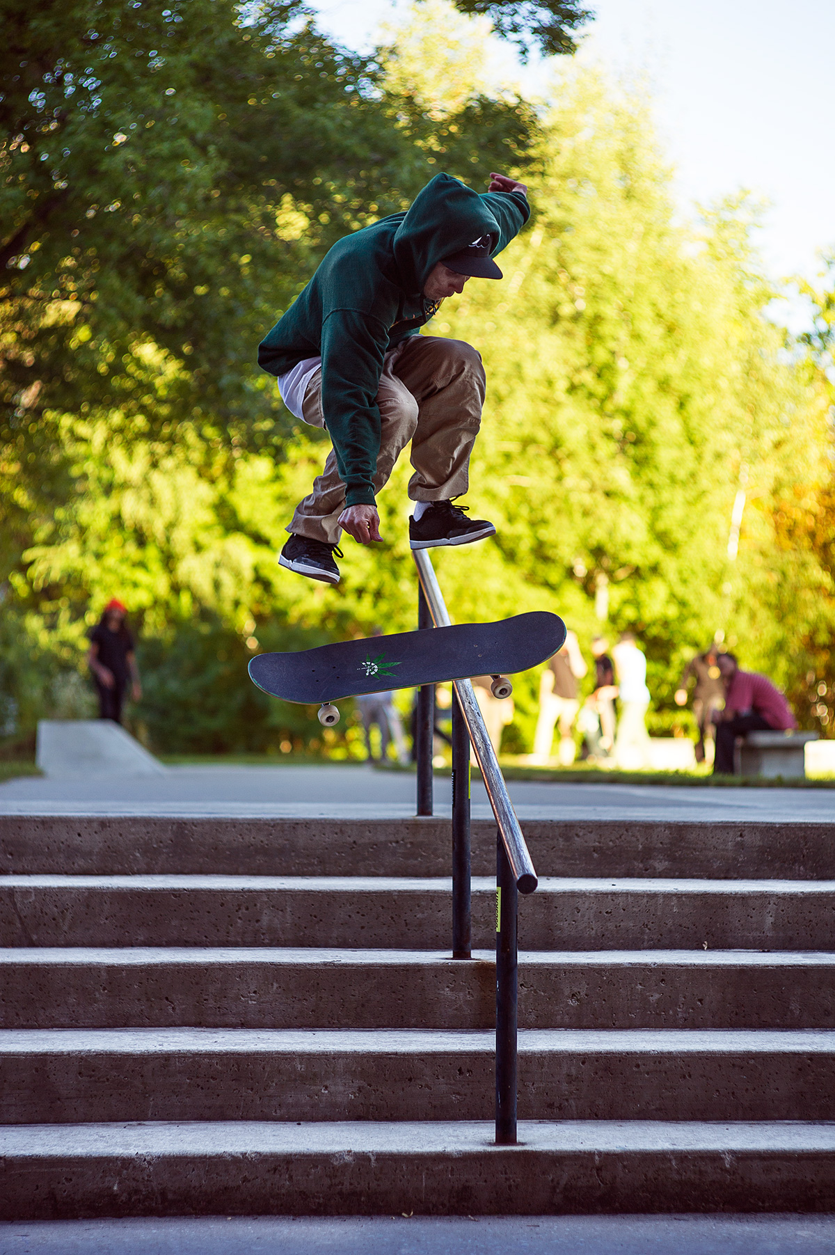 Jessy Jean Bart was totally burnt from his summer skating, Just came into the van to chill with us, but end up doing this big spin flip boardslide. True Trooper!